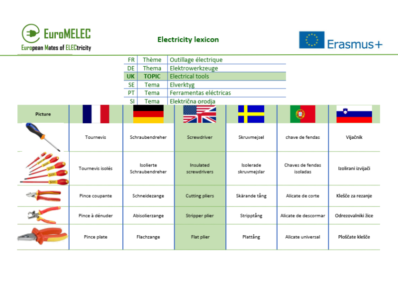 Divided in 6 sub-topics, this 6-language glossary has been built by the students to help them (and their teachers ;-) to communicate on technical subjects. In addition to each language of the 5 implied countries, this glossary naturally contains the English language which was the communication language along the project.