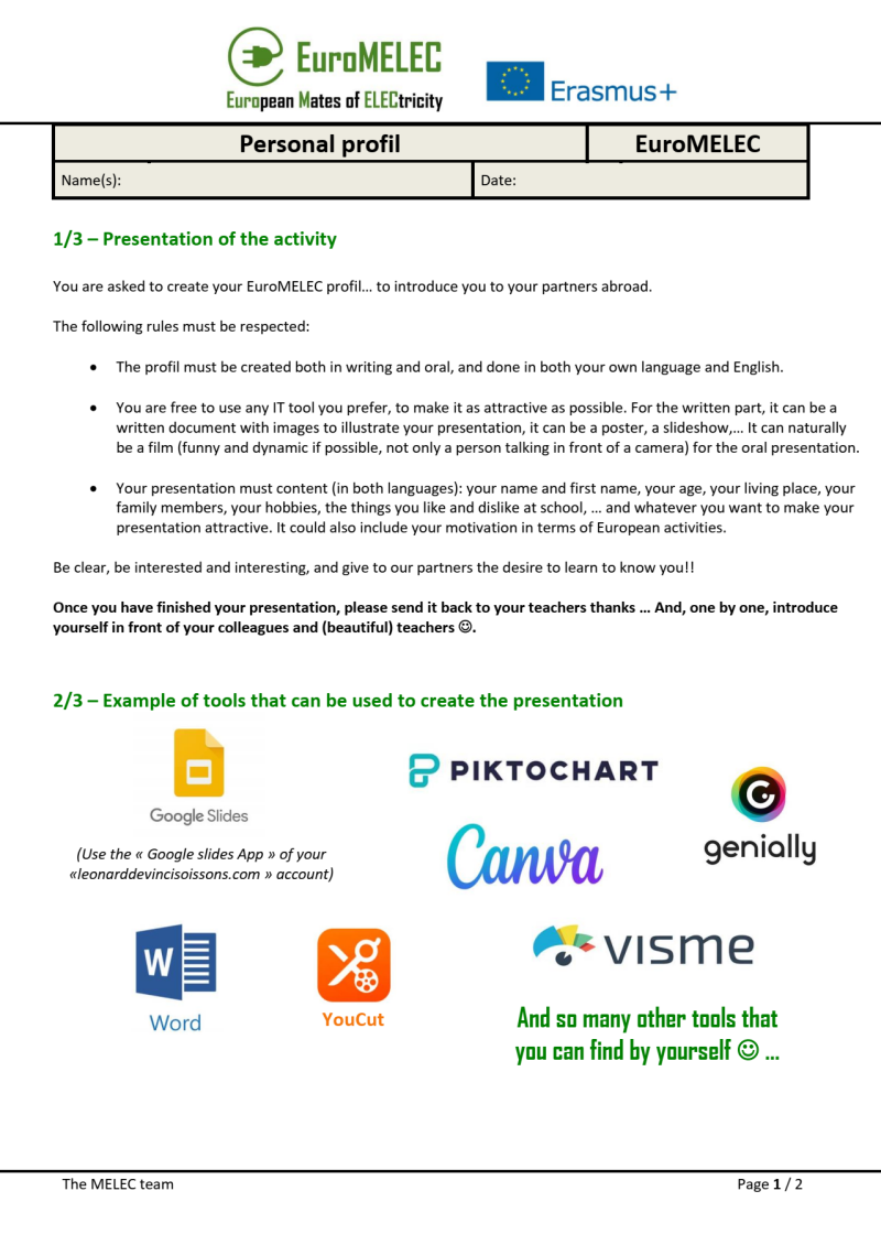 In the beginning of the project, students had to create their profil to introduce themselves to their partners.